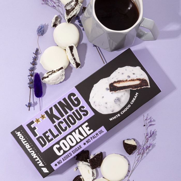 Fitking Delicious Cookie White Chocolate Cream - це найсмачніше пісочне печиво з лінійки Delicious! У них чудовий смак, коли вони вкриті білим шоколадом. Їх насичений смак порадує навіть найвибагливіших гурманів!