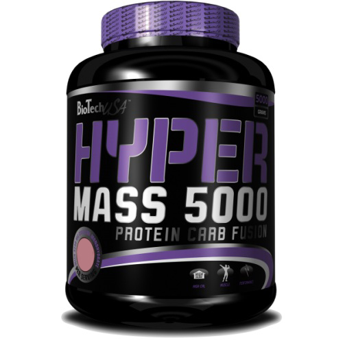 BioTech Hyper Mass 5000 - це високоефективний гейнер, який сприяє швидкому набору м'язової маси. У складі даної добавки містяться амінокислоти, необхідні для якісного будова білка і запобігання його розпаду, внаслідок важких фізичних навантажень. Для запобігання катаболізму необхідно підтримувати оптимальний рівень амінокислот і вуглеводів. Гейнер складається з суміші білків і вуглеводів, збагаченої креатиновой формулою. Даний препарат забезпечує повноцінну роботу організму, за рахунок його тривалої підживлення поживними речовинами. Гейнер покращує якість і швидкість відновлення, забезпечує максимальний ріст м'язів. За рахунок використання складних вуглеводів, тривалість дії гейнера збільшується. Таким чином, підживлення продовжується під час фізичної активності і в відпочинок. Креатин збільшує віддачу і продуктивність протягом тренувань, за рахунок цього підвищується сила і фізичні результати. Даний продукт розрахований на прискорений набір ваги.