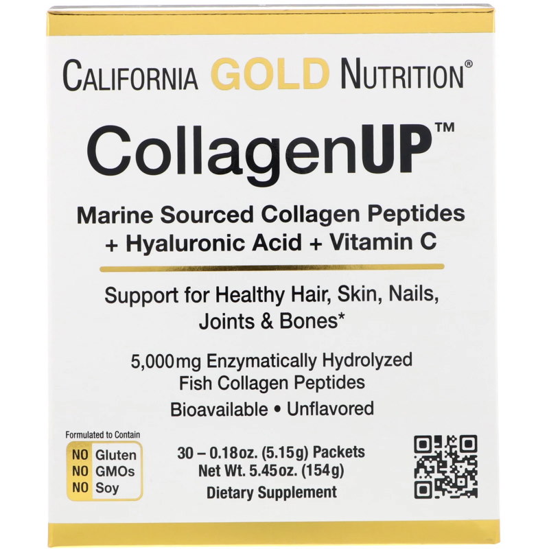 California Gold Nutrition CollagenUP - чудовий морський колаген з додаванням вітаміну С і гіалуронової кислоти. Прийом добавки допомагає відновлювати сполучну тканину, підвищує еластичність шкіри і зменшує інтенсивність запальних процесів.