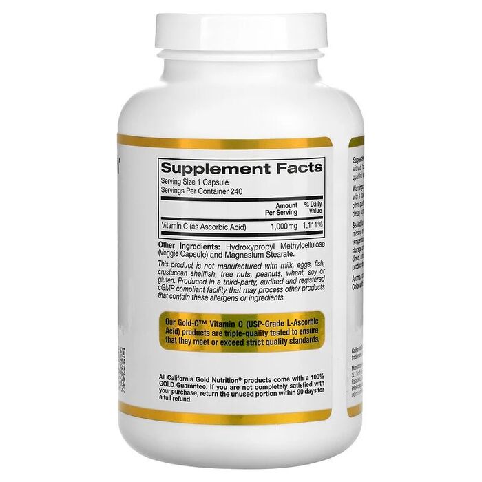 Опис Вітамін C California Gold Nutrition Gold C, 240 вегакапсул для підтримки імунітету та шкіри