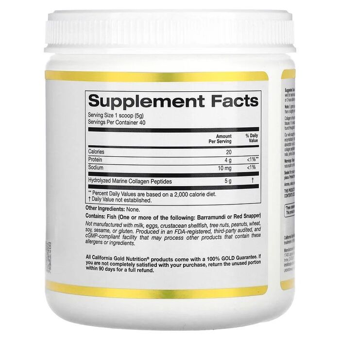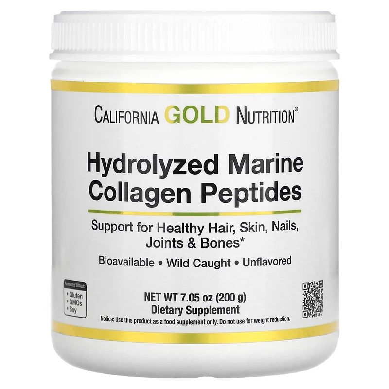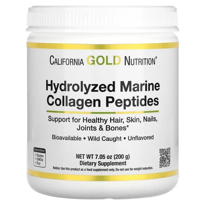 California Gold Nutrition Hydrolyzed Marine Collagen Peptides - це гідролізований ферментативним способом колаген, розщеплений на біодоступні пептиди для підтримки здоров'я волосся, шкіри, нігтів, суглобів та кісток.