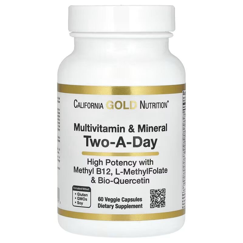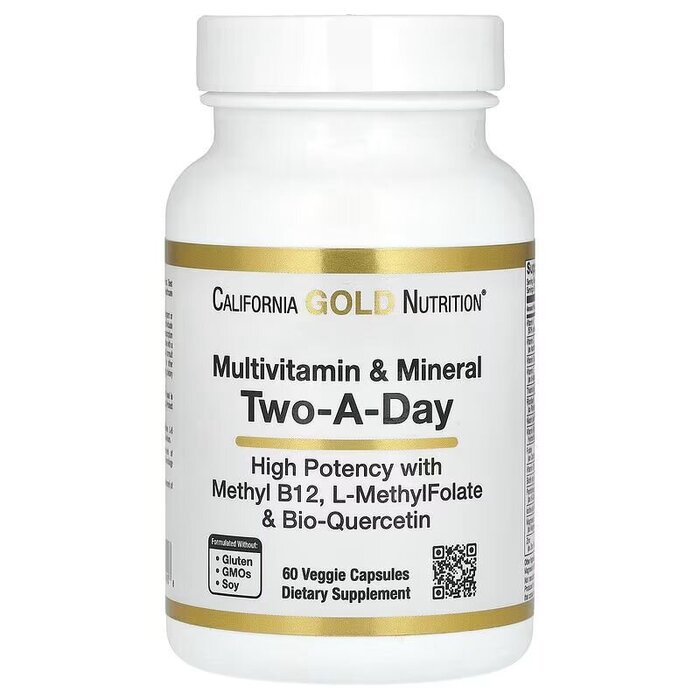 Опис Вітаміни та мінерали California Gold Nutrition Multivitamin and Mineral Two-A-Day, 60 вегакапсул для підтримки мозку, м'язів