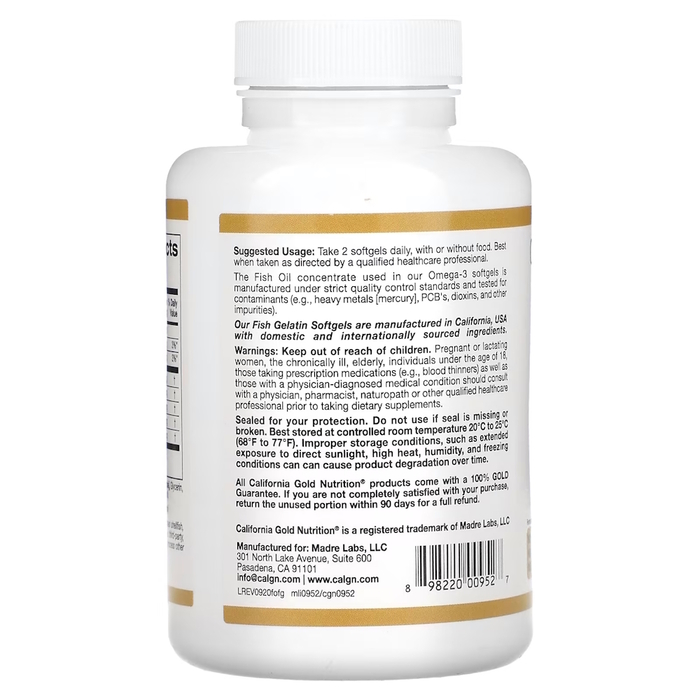 Жирні кислоти California Gold Nutrition Omega 3 Premium Fish Oil, 100 рибних капсул
