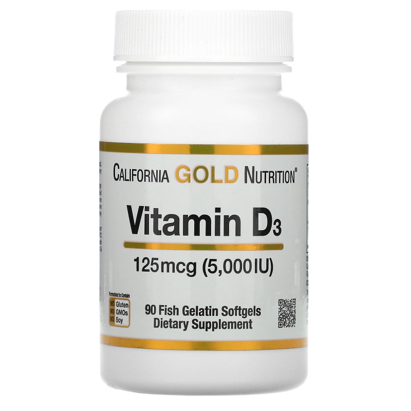 Опис Вітаміни та мінерали California Gold Nutrition Vitamin D3 125 mcg, 90 рибних капсул
