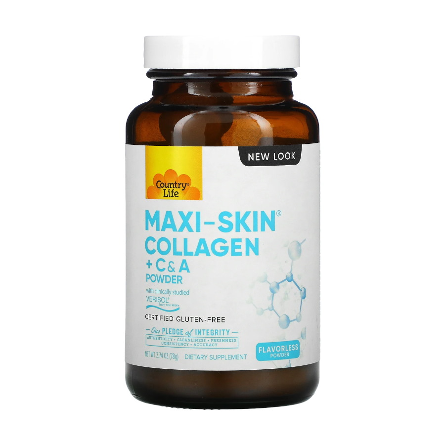 Country Life Maxi-Skin Collagen + C & A - використовує потужний тришаровий підхід до догляду за шкірою, підтримуючи всі три шари шкіри: епідерміс, дерму і підшкірну клітковину.