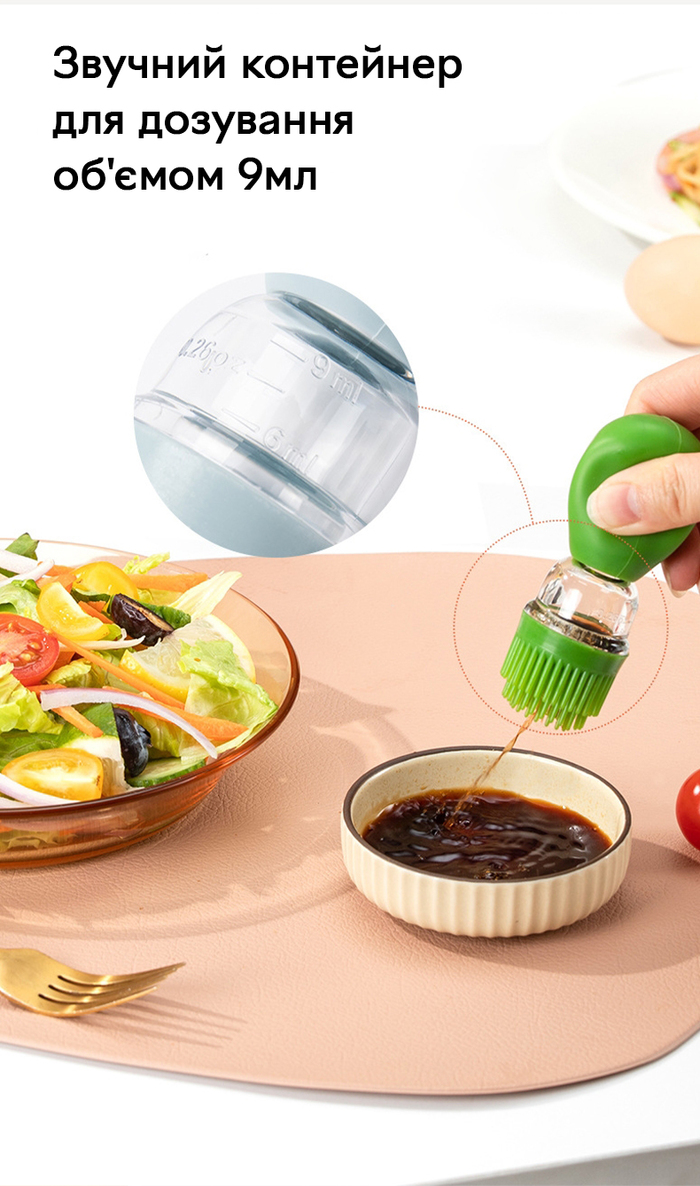 - Силіконова кисть дозволяє акуратно наносити масло або оцет