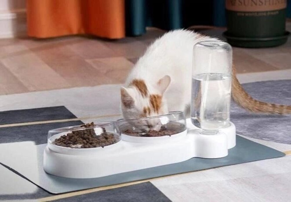 Ця годівниця для домашніх тварин з автоматичним розпилювачем води — дивовижний винахід. 2 миски для їжі, ще одна автомат для води. дозволяє кільком домашнім тваринам їсти одночасно. Завдяки цій мисці час годування стає легшим навіть для найбільш активних домашніх тварин. Завжди тримайте місце годівлі чистим і сухим від розливів.