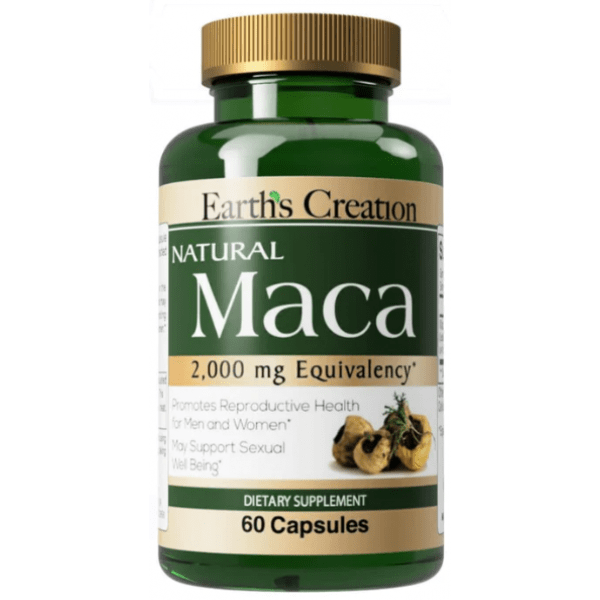 Earth's Creation Maca 2000 mg - це харчова добавка, яка містить екстракт кореня маки. Мака - це рослина, яка росте у високогір'ях Перу. Воно століттями використовувалося в традиційній перуанській медицині для різних цілей.