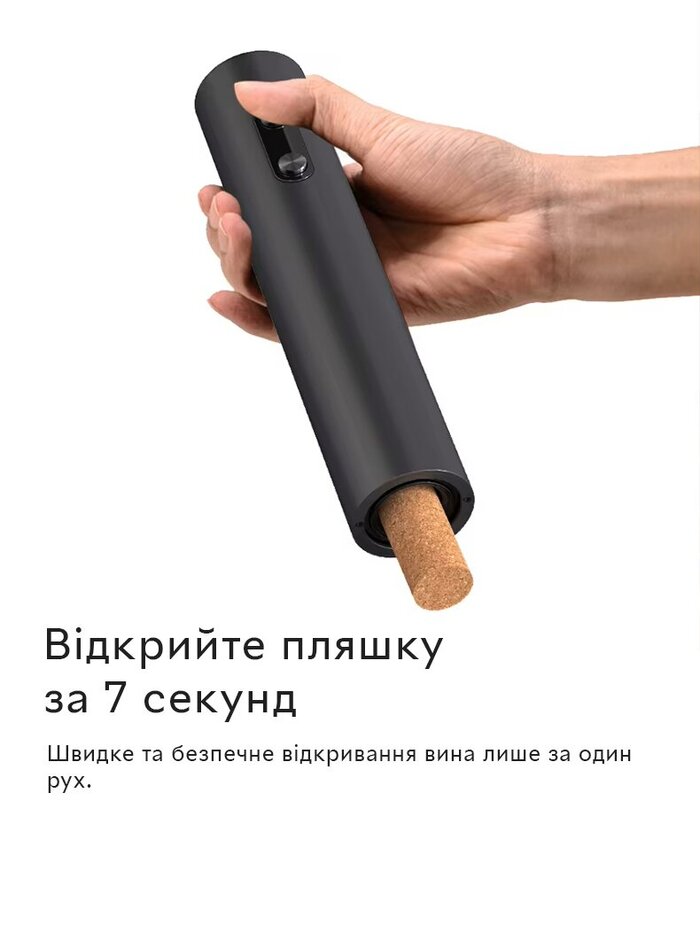 - Автоматичний механізм дозволяє відкривати пляшки з вином одним натисканням кнопки.