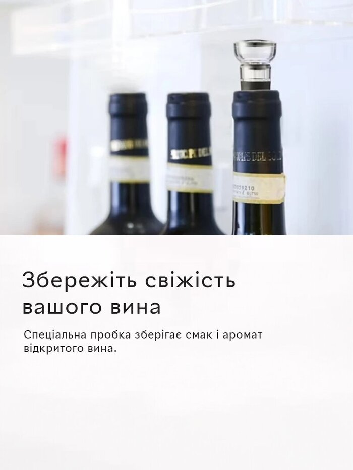 - Вакуумна пробка – зберігає свіжість вина після відкриття, запобігаючи окисленню.