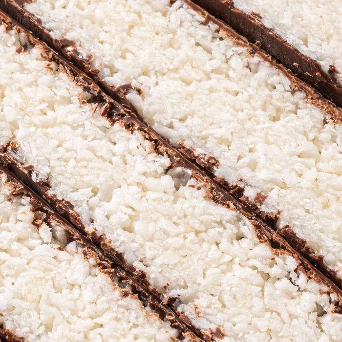 | кокосова стружка (50%), екстракт яблучного соку концентрований, шоколадна глазур (25%) (терте какао, мальтитний підсолоджувач, какао-масло, какао-порошок зі зниженим вмістом жиру, емульгатор лецитин, натуральний ароматизатор: ваніль) |