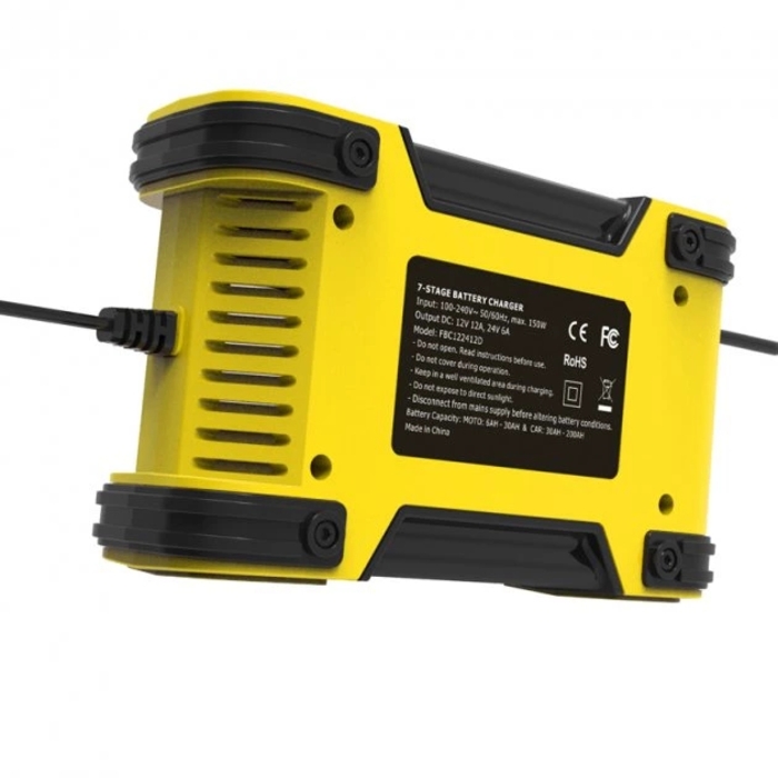 Імпульсний зарядний пристрій Foxsur 12V (24V) потужністю 12 Ah (6Ah) для акумуляторів різних видів 6-200Ah, Black/Yellow