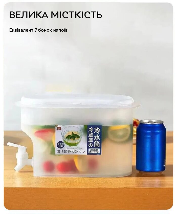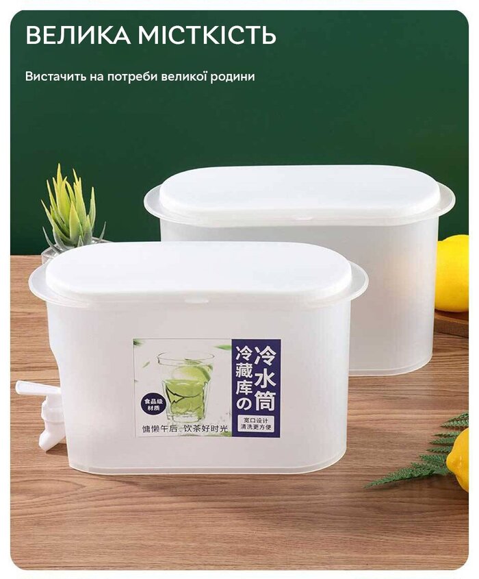Велика ємність: Диспенсер об'ємом 2 літра дозволяє зберігати в ньому достатньо рідини для великої компанії, наприклад, для фуршету або вечірки.