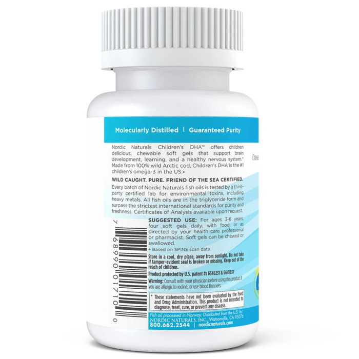 Nordic Naturals Children's DHA 250 mg - Омега-3 жирні кислоти з додаванням вітаміну А в формі капсул. Добавка розроблена спеціально для дітей у віці 3-6 років. Прийом добавки підтримує правильний розвиток мозку, зміцнює імунітет і покращує загальне самопочуття.