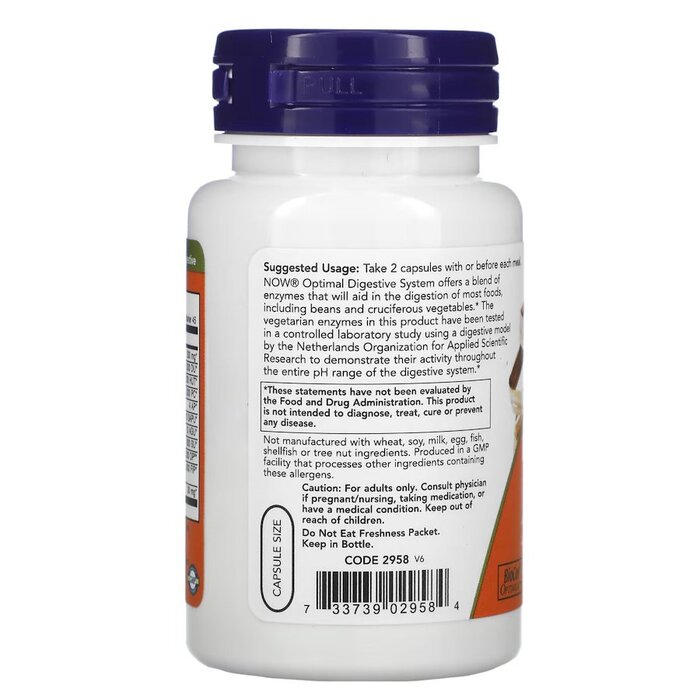 NOW Optimal Digestive System - суміш ферментів, які допомагають перетравлювати більшість продуктів, включаючи бобові та овочі сімейства хрестоцвітих.