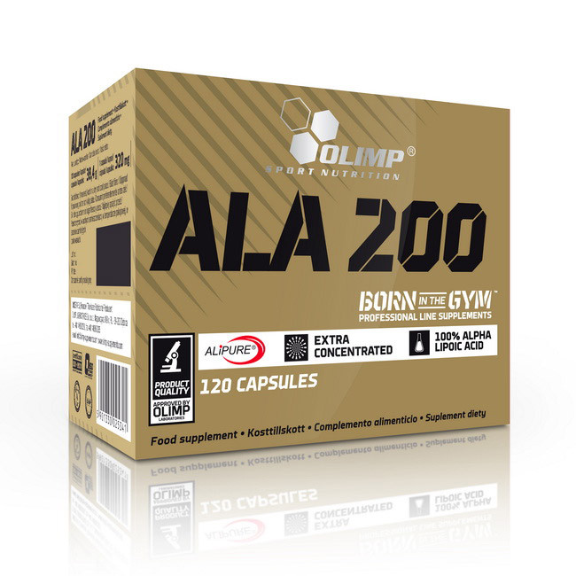 ALA 200 від Olimp - харчова добавка на основі альфа-ліпоєвої кислоти, яка підвищує тонус і енергетичний потенціал, захищає м'язи від катаболізму, а також нормалізує функціонування серця, судинної і нервової систем. Крім того, препарат має инсулиноподобное дію, нормалізує рівень цукру в крові. Регулярний прийом добавки сприяє швидкому і повному засвоєнню поживних речовин, запобігає атеросклеротичні процеси за рахунок антиоксидантної дії.
