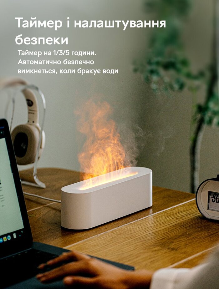 Портативний електричний аромадифузор Kinscoter DQ-709 Nordic Style Flame V2, White з ефектом полум'я