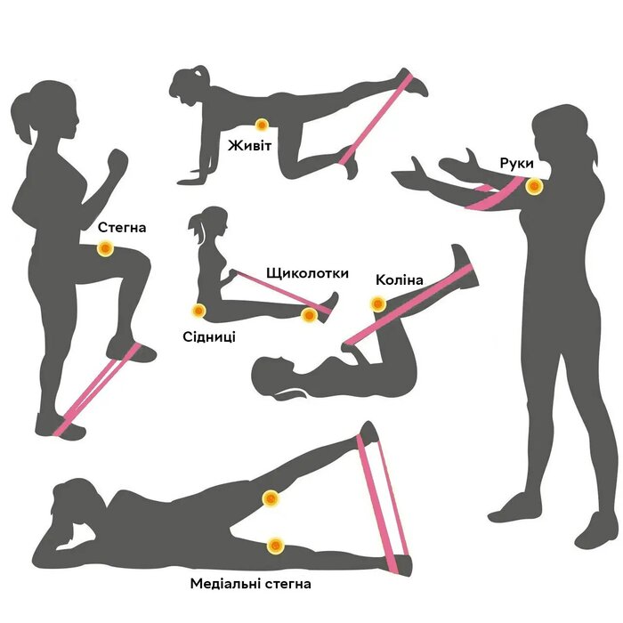 - Результативність і простота у використанні роблять фітнес гумки незамінним засобом для розвитку м'язової структури, фізичної сили, витривалості та гнучкості.