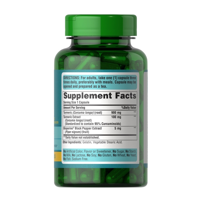 Puritan's Pride Turmeric Curcumin 1000 mg з BioPerine 5 mg - натуральна харчова добавка, що містить екстракт куркуми з високим вмістом куркуміну, що є сильним антиоксидантом.