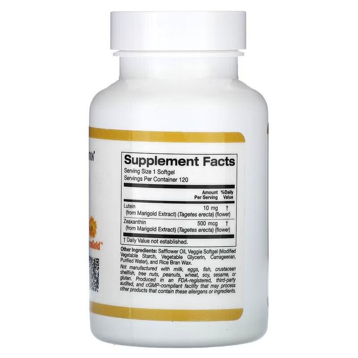California Gold Nutrition Lutein 10 mg - натуральная добавка, содержащая антиоксидантные каротиноиды, содержащиеся в цветках бархатцев, которые способствуют поддержанию общего здоровья глаз.