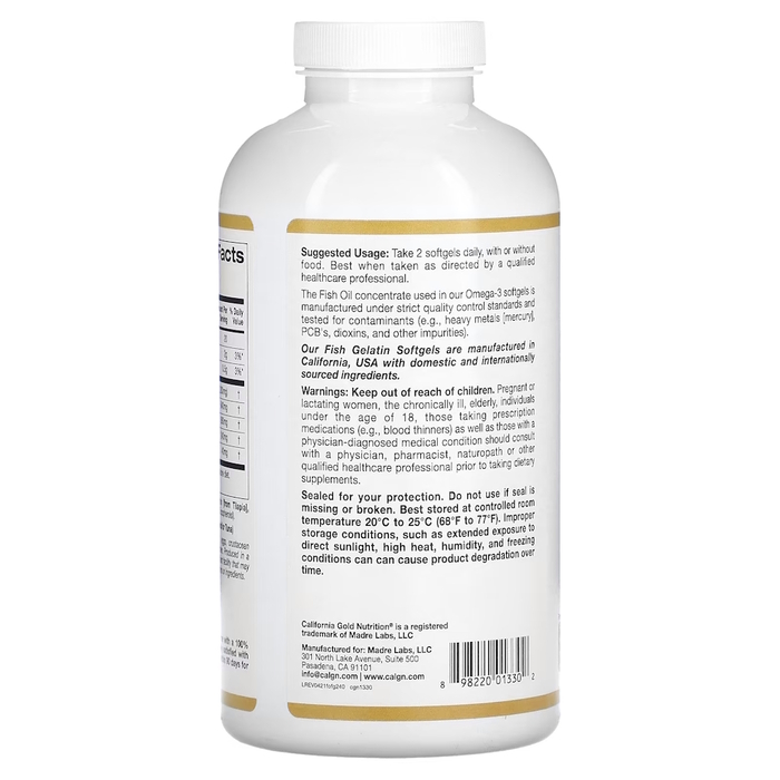 Как принимать California Gold Nutrition Omega 3 Premium Fish Oil