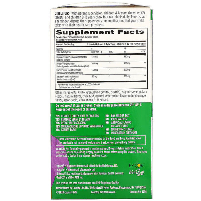 Состав продукта Натуральная добавка Country Life Gut Connection Kids Digestive Balance, 60 жевательных таблеток