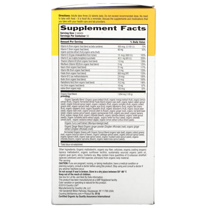 Характеристики Витамины и минералы Country Life Realfood Organics Prenatal, 90 таблеток