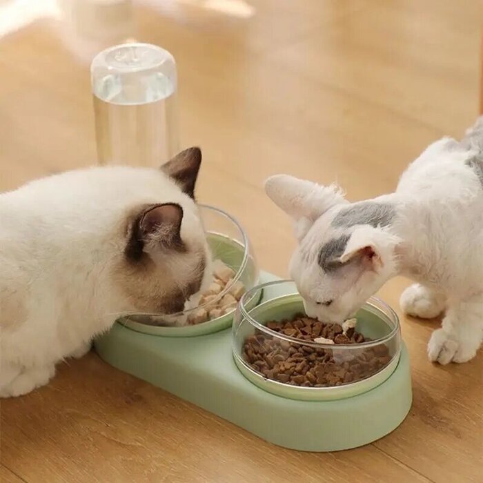 Эта кормушка для домашних животных с автоматическим распылителем воды — удивительное изобретение. 2 миски для еды, еще один автомат для воды. позволяет нескольким домашним животным есть одновременно. Благодаря этой миске время кормления становится более легким даже для наиболее активных домашних животных. Всегда держите место кормления чистым и сухим от разливов.