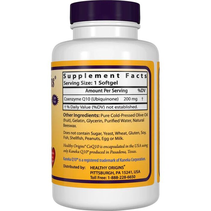 Состав продукта Убихинол Healthy Origins CoQ10 Kaneka Q10 200 mg, 60 капсул
