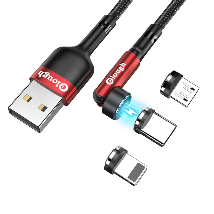 Отзывы Кабель магнитный с быстрой зарядкой Elough 7 Contact 3 A 1 м 3 в 1 Micro USB/Lightining/Type C, Red вращение на 540°