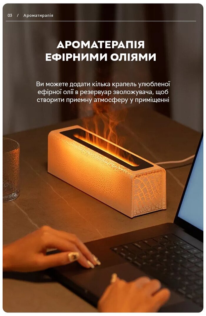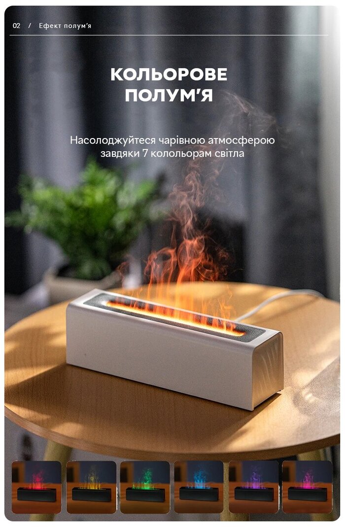 Особенности :Можна додавати арома олії, полум'я двох кольорів