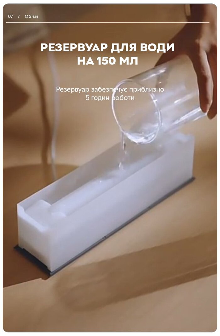 - Емкость резервуара для воды: 150 мл
