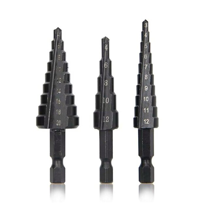 Описание Набор ступенчатых конусных упражнений Semi Cone Drill Bit 3 штуки (3-12, 4-12, 4-20 мм), Black