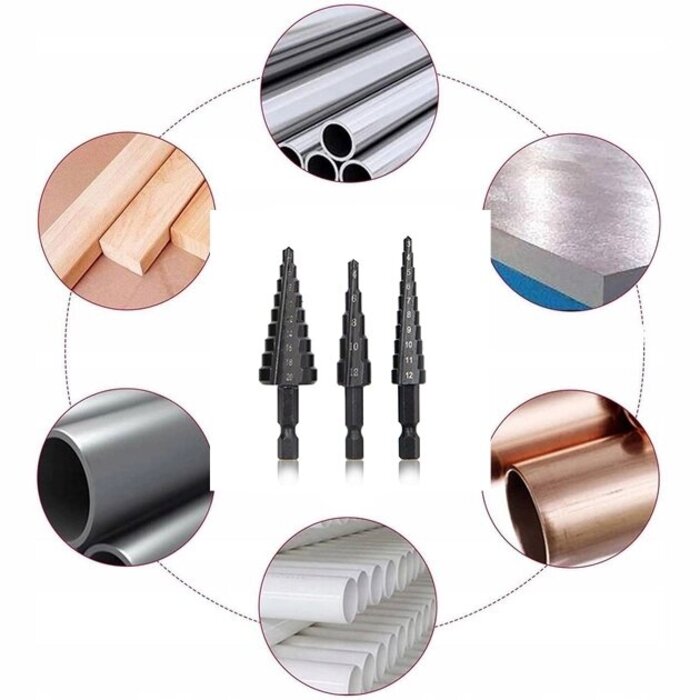 Набор ступенчатых конусных сверл SEMI 3 штуки (3-12, 4-12, 4-20 мм) – это набор высококачественных сверл для точного сверления разных диаметров. Предназначен для мастеров работающих с металлом, деревом и другими материалами.