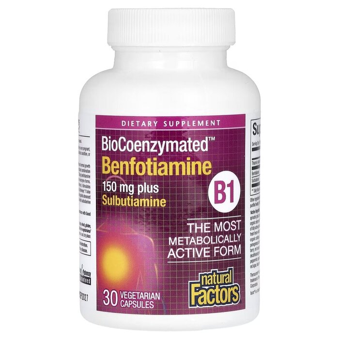 Бенфотиамин и сульбутиамин Natural Factors BioCoenzymated Benfotiamine plus Sulbutiamine, 30 вегакапсул