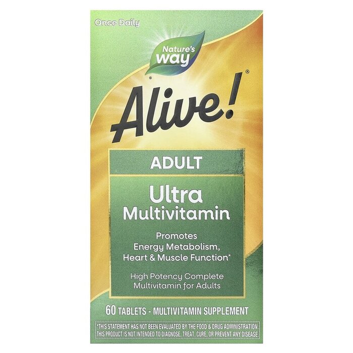 Nature's Way Alive! Adult Ultra Potency – это высокоэффективный мультивитаминный комплекс, разработанный специально для взрослых. Он содержит полный спектр витаминов и минералов, а также смеси на основе натуральных продуктов для поддержки общего здоровья и жизненной энергии.