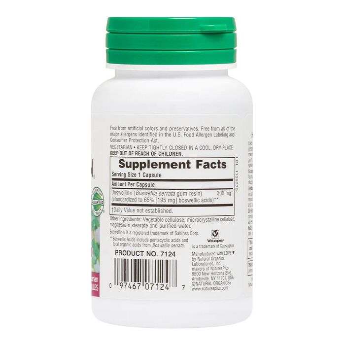 Natures Plus Herbal Actives Boswellin 300 mg - стандартизированная растительная пищевая добавка на основе экстракта смол камеди босвелии, которая давно используется в траволечении для улучшения общего самочувствия.