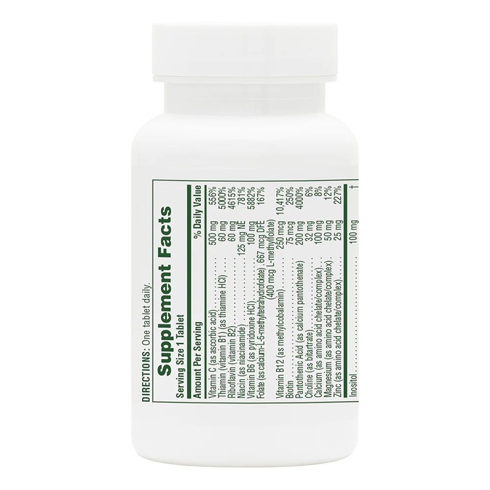 Формула Mega-Stress Complex была разработана для восполнения водорастворимых витаминов, которые организм теряет во время стресса. В нее также добавили экстракты корня валерианы и ромашки, которые широко известны своим успокоительным эффектом.