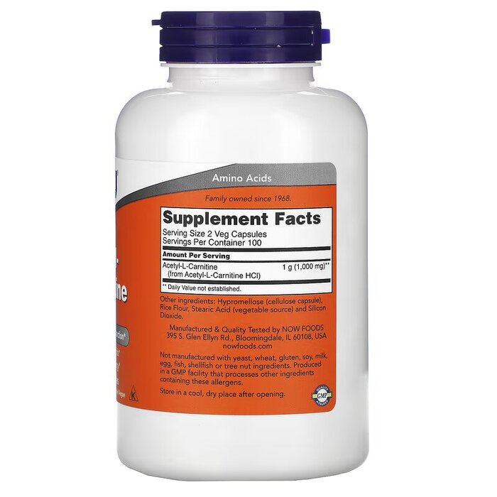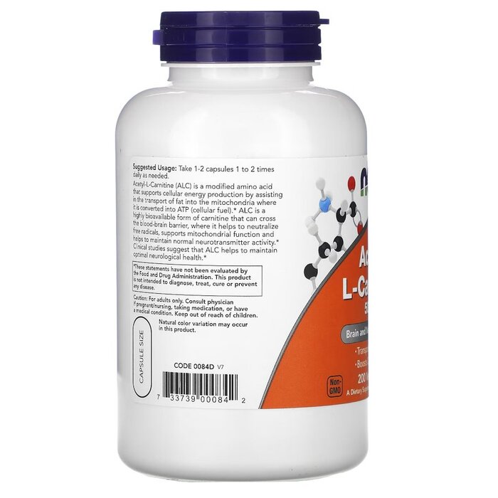 NOW Acetyl-L-Carnitine представляет собой модифицированную аминокислоту, которая поддерживает выработку клеточной энергии, помогая транспортировать жир в митохондрии, где он превращается в АТФ (клеточное топливо).