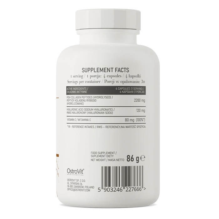 Характеристики Препарат для суставов и связок OstroVit Marine Collagen with Hyaluronic Acid and Vitamin C, 120 капсул
