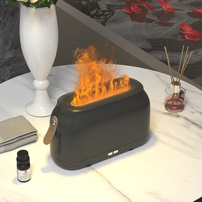 Увлажнитель воздуха, портативный аромадифузор с имитацией огня Kinscoter iFLAME HZ005 180 мл, Black