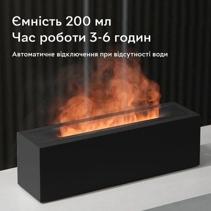 Увлажнитель воздуха, портативный аромадифузор с имитацией огня Kinscoter H3 Nordic Style Flame 200 мл, Black