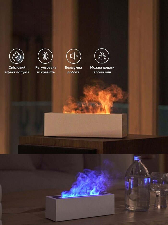 Особенности :Можно добавлять арома масла, пламя двух цветов