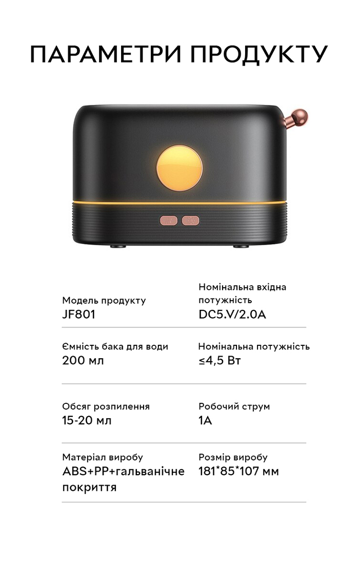 Характеристики Увлажнитель воздуха, портативный аромадифузор с имитацией огня Kinscoter KC-026 200 мл, Black