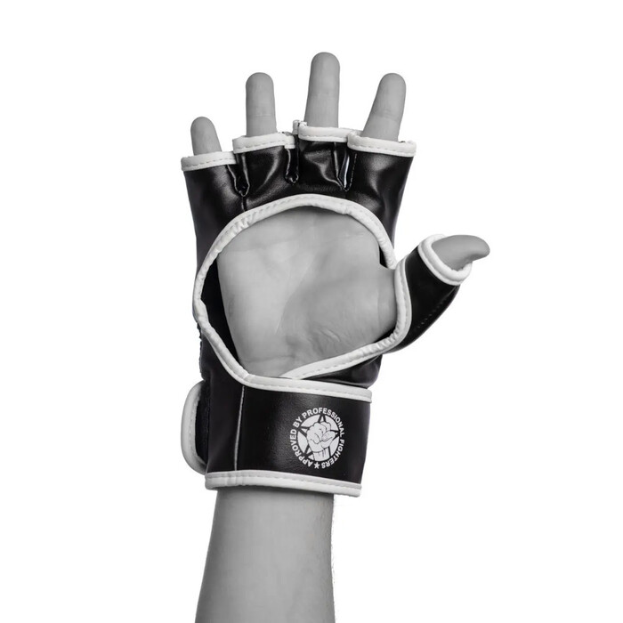 Конструкция с открытой ладонью обеспечивает безграничную свободу движений и максимальную вентиляцию. Благодаря этому перчатки подойдут для эффективных захватов и бросков. Удлиненный манжетный ремень и защитная подушка в зоне запястья позволяют плотно и надежно зафиксировать сустав и защититься от травм. Для интенсивных тренировок сделана дополнительная защита большого пальца, так как она наиболее травматична.