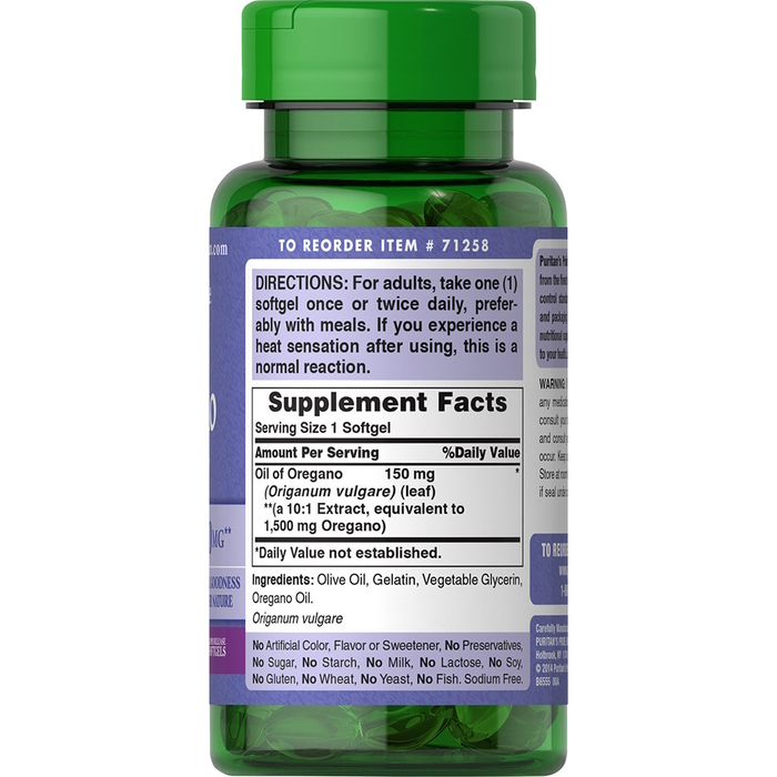 Описание Натуральная добавка Puritan's Pride Oil of Oregano 150 mg, 180 капсул