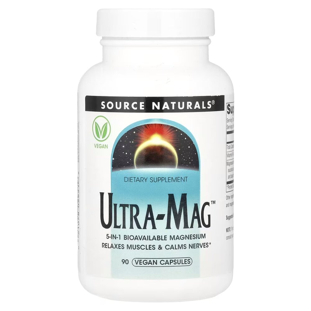 Source Naturals Ultra-Mag – высокоэффективная пищевая добавка с магнием, содержащая пять биодоступных форм магния и витамин B-6 для оптимального усвоения и поддержки функций организма.