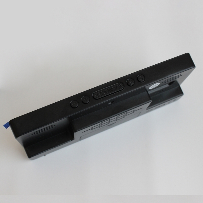 - Большой дисплей с яркой подсветкой, который показывает время, дату и температуру в комнате.