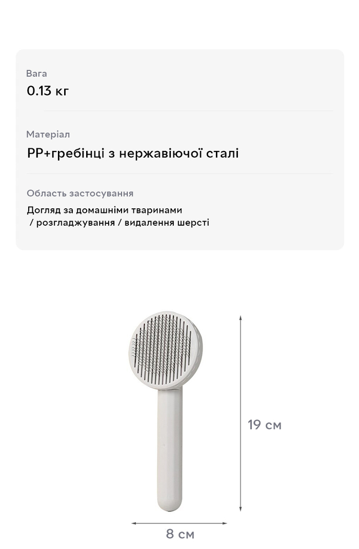 Опис Щітка для видалення вовни і підшерстка у котів і собак Semi чесалка-пуходерка, що самоочищається 19 x 8 см, White