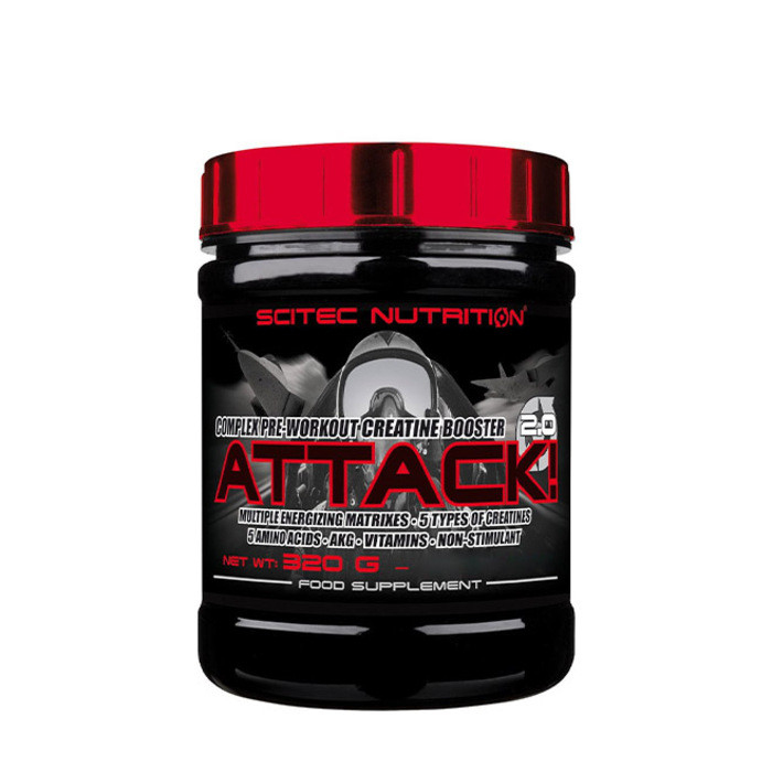 Scitec Nutrition Attack! 2.0 - відмінний передтренувальний комплекс з креатином. Добавка покращує всі спортивні показники вже з першого прийому, але при цьому не робить стимулюючого ефекту на ЦНС. Відмінне рішення для тих спортсменів-новачків, яким уже не вистачає власних можливостей.